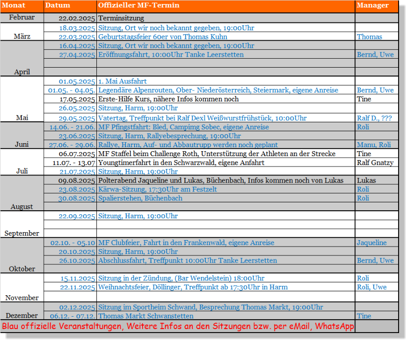 Über uns Aktuelles Termine Rallye Bikes Mitglieder Bildergalerie Hall of Fame Termine zurück zu Home Termine